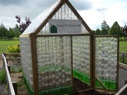 | Greenhouse made from recycled, stacked plastic bottles. |
